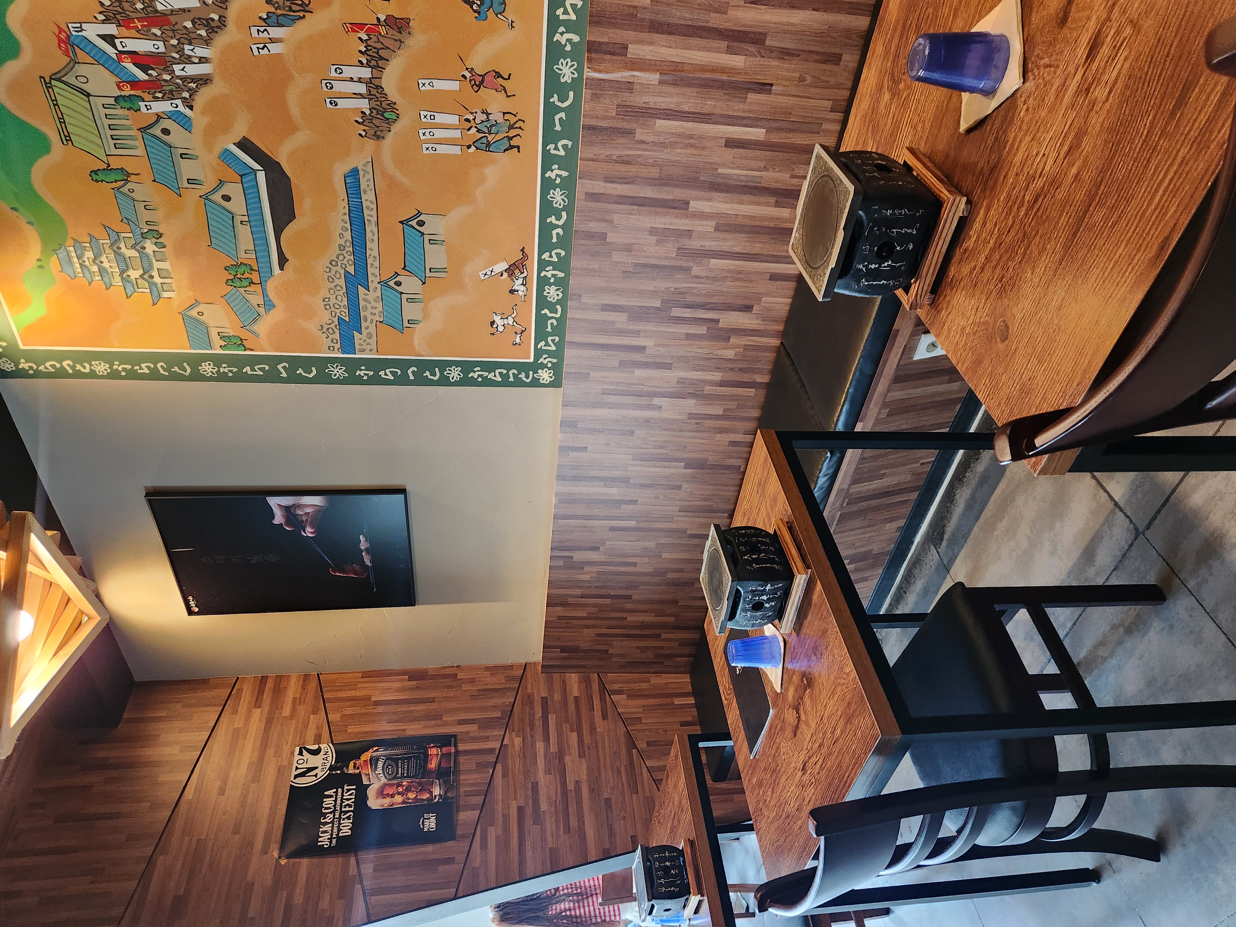 벽면에는 일본풍 벽화와 포스터가 곳곳에 있어