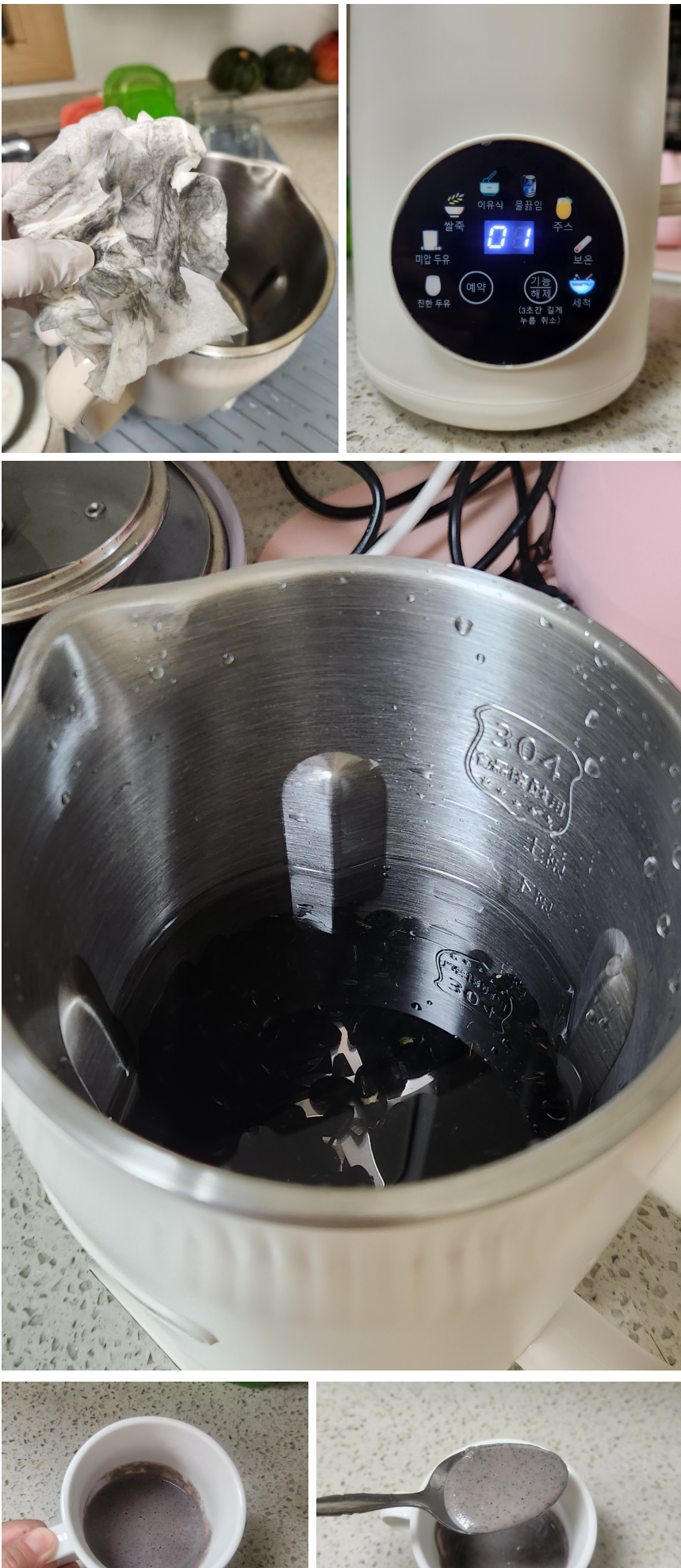 | 완성된 두유 맛 | 대만족! 시중 두유와 비교 불가한 고소함과 신선함. 걸쭉한 농도가 마치 죽처럼 느껴질 정도. |