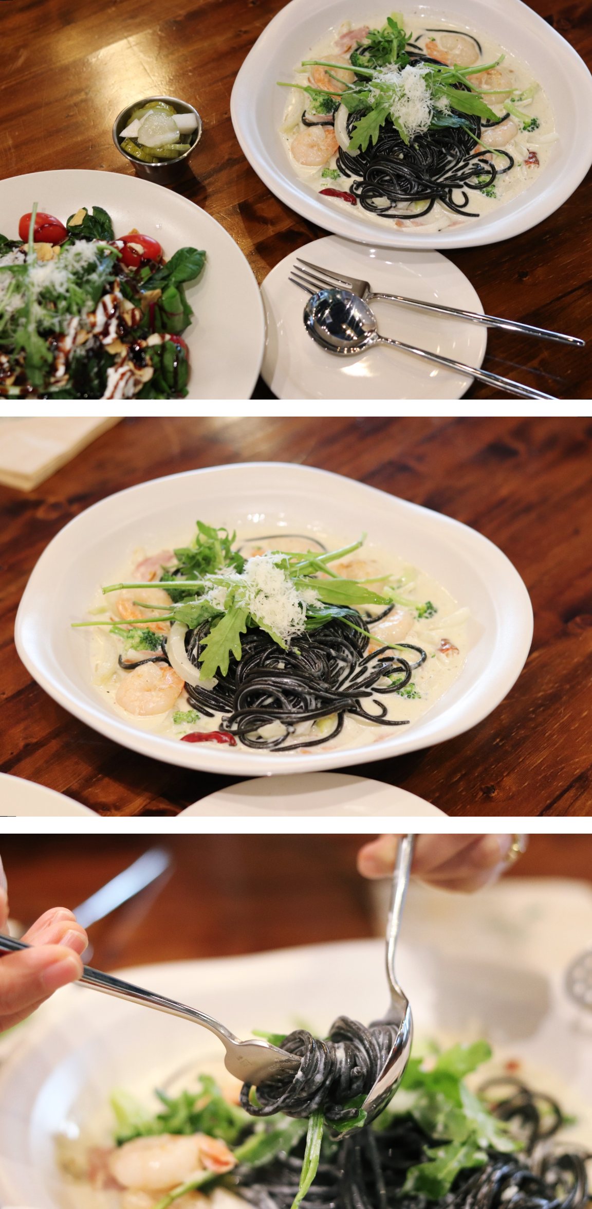 다음으로 등장한 리코타치즈샐러드는 신선함이 가득한 한 접시였습니다. 싱싱한 야채들과 함께 풍성하게 담긴 리코타치즈는 부드럽고 고소한 맛을 자랑했고, 위에는 다양한 과일이 올라가 있어 상큼한 맛까지 더해졌습니다. 특히나 리코타치즈의 부드러운 식감과 신선한 야채, 그리고 과일의 조화가 너무나도 훌륭했습니다. 이 샐러드는 입안에서 건강함과 풍부한 맛을 동시에 느낄 수 있었고, 크림파스타와 함께 먹으니 더욱 잘 어울렸습니다.